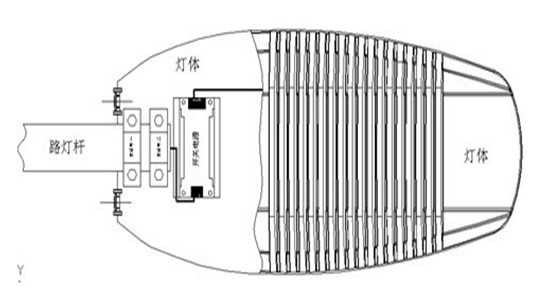 2、将灯杆支架管套上密封圈穿入灯具抱攀中并上紧螺钉,施加在螺栓或螺钉上的扭矩最大不能大于30N,将路灯电缆线接入,注意接线标识,接线必须分清零线N、地线、火线L。