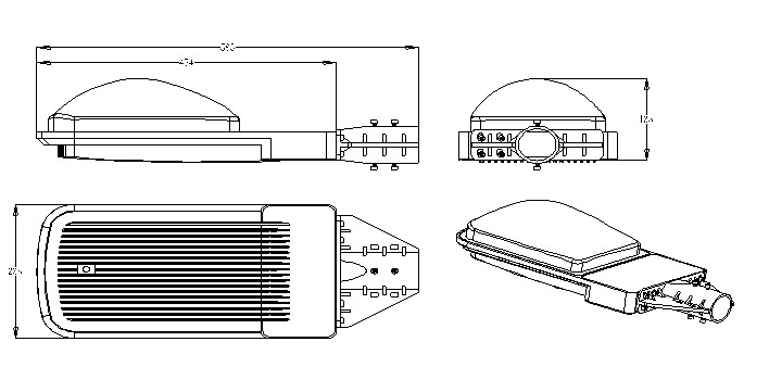 3) 灯具主体为铝合金压铸成形,散热鳍片,坚实耐用;