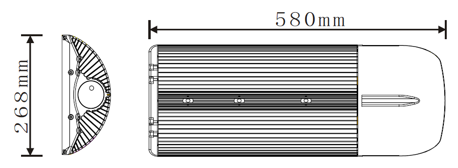 2) 灯体为拉伸铝一体成型,散热鳍片,坚实耐用;