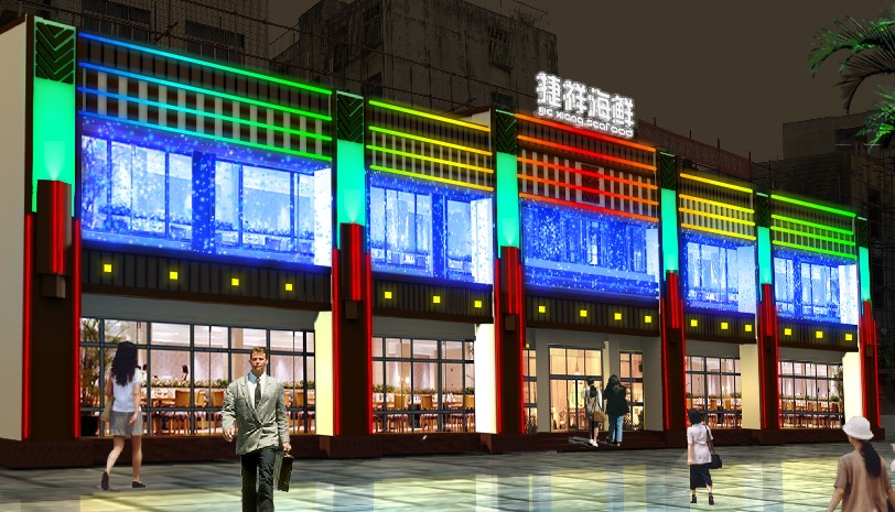 1、完工三亚市捷详海鲜酒楼整体亮化